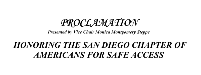 WHEREAS, the San Diego Chapter of Americans for Safe Access has been a leading force in championing the rights of medical cannabis patients, advocating for safe, affordable, and reliable access, reducing stigma, and advancing evidence-based policies rooted in public health and compassion; and
